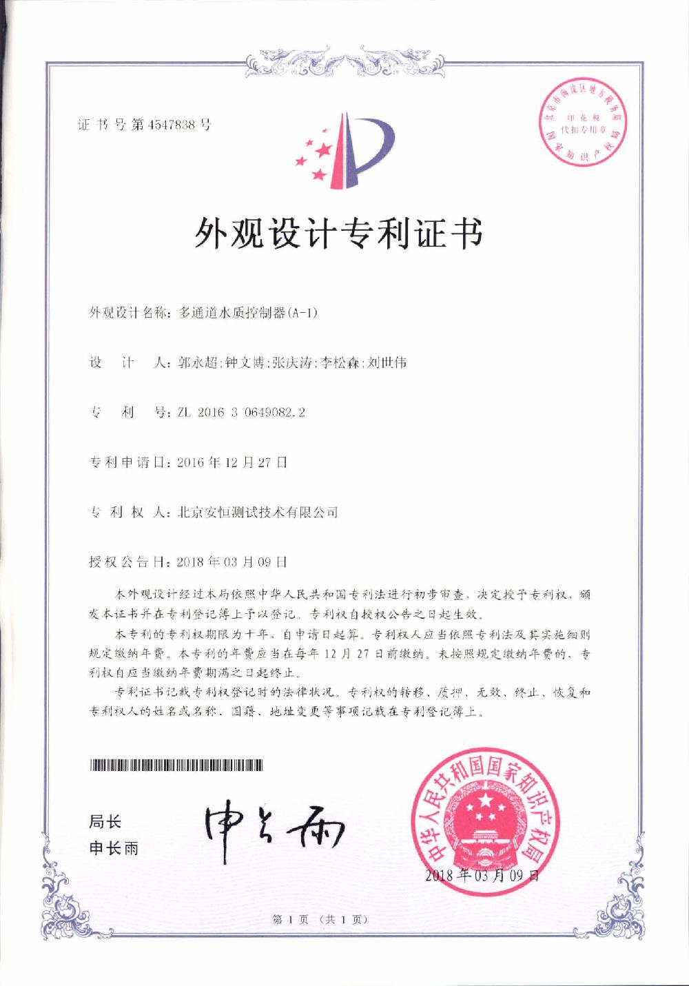 / 外观设计——多通道水质控制器(A-1)