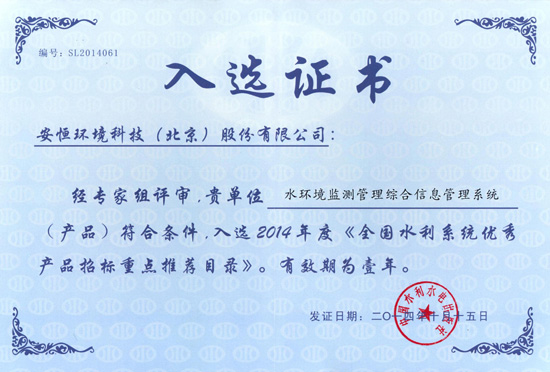 为贯彻落实2011年中央水利1号文件和中央水利工作会议精神,规范和搭建全国水利系统*秀产品招标和选购工作的市场准入制度,作为水利部的直属单位,中国水利水电出版社组织水利专家,按照严格的评审要求,推荐了*批全国水利*秀产品,并编制《全国水利系统*秀产品招标重点推荐目录》。安恒集团LIMS水环境监测管理综合信息管理系统凭借在水资源监控能力建设方面的*异表现通过层层角逐连续两年入选《目录》。