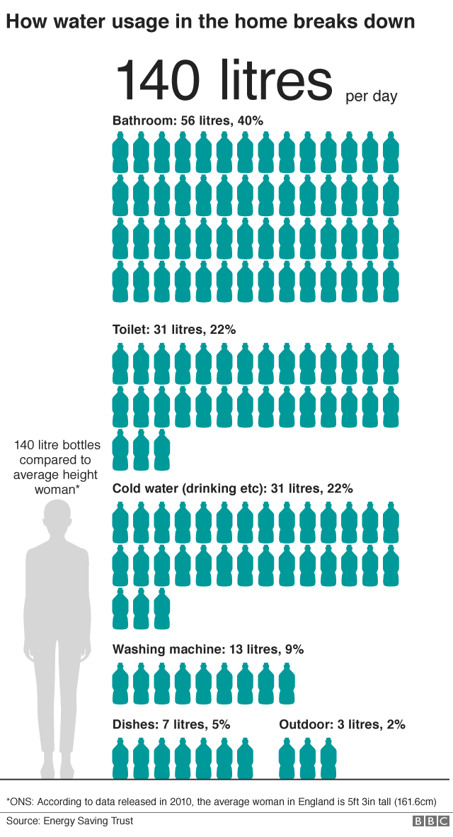 “我们很乐意看到在每天人均用水量上有一个雄心勃勃的目标,” 水智慧(英国非政府组织Waterwise, 译者注) 的Nicci Russell告诉BBC,水智慧致力于推进高效用水活动。