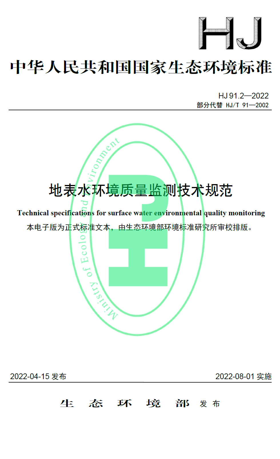 HJ91.2-2022地表水环境质量监测技术规范将于2022年8月1日正式实施!